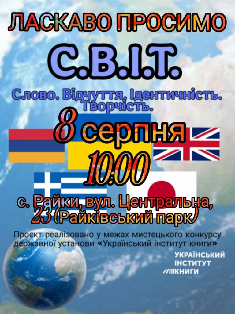 8 серпня у селі Райки Швайківської громади Бердичівської району відбувся яскравий фестиваль літератури й культур у межах проєкту «С.В.І.Т. — Слова. Відчуття. Ідентичність. Творчість», що реалізується за підтримки Український інститут книги