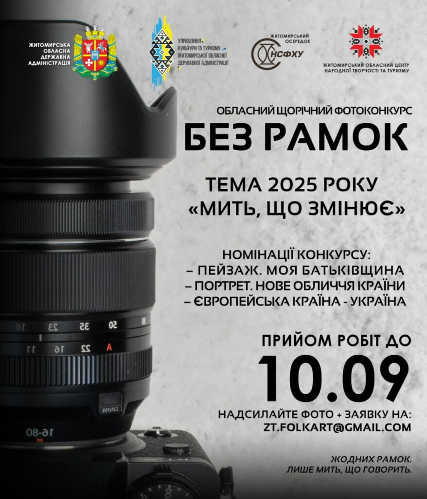 📸 Оголошується прийом робіт на щорічний обласний фотоконкурс і фотовиставку «Без рамок»!