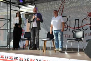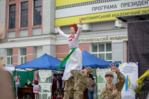 Головна сцена на Михайлівській, Театр ляльок, бібліотека для дітей та юнацтва, Молодіжний центр Житомирщини, книгарня «Є» та музейні простори — кожна з локацій стала частиною великого фестивального полотна. Місто наповнилося книжками, розмовами, зустрічами, і це стало справжнім святом єдності та духовної сили.