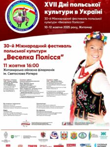 З 10 по 12 жовтня 2025 року в межах XVII Днів польської культури в Україні у Житомирі проходитиме 30-й Міжнародний фестиваль польської культури «Веселка Полісся».
