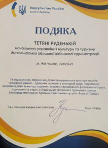 Яскравим прикладом ефективної співпраці державних і громадських інституцій став міжнародний фестиваль «Українські фестини», що відбувся у Туреччині. Творчі діти Житомирщини — представники культурної дипломатії України — гідно представили регіон на міжнародній сцені.