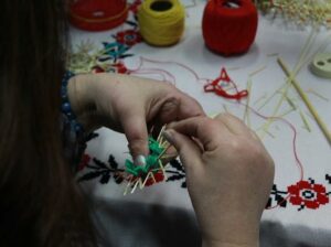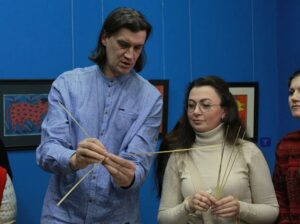 Практична частина семінару стала простором живого обміну досвідом. Під керівництвом майстра народної творчості Олексія Пшеничнюка учасники опановували техніку плетіння солом’яника, знайомилися з особливостями роботи з природним матеріалом і традиційними прийомами його обробки.