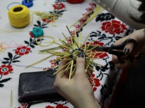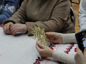 Під час майстер-класу від Ганни Пшеничнюк учасники власноруч виготовляли традиційну солом’яну новорічну прикрасу — «Зірочку», що здавна символізує світло, добробут і відродження.