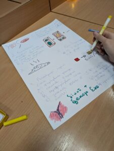 Під час практичної частини тренінгу учасники працювали з календарями, відзначаючи важливі дати й події, а також використовували техніки візуалізації. Кожен мав можливість у творчій формі зобразити своє бачення майбутнього: хтось детально прописував кроки до досягнення мети, перетворюючи бажання на конкретний план дій, а хтось передавав свої мрії через символічні малюнки, наповнені особистим змістом.