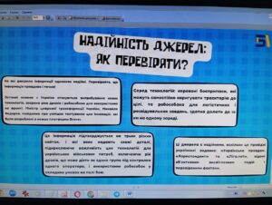 2. Безпека в мережі та захист від фейків Цифрова грамотність — це насамперед безпека. Під час заходів «Цифровий щит» та «День безпечного Інтернету» ми навчали дорослих і підлітків правилам кібергігієни. А на заняттях «За кадром новин» та в інтелектуальній грі «Нота Єнота» мешканці вчилися розрізняти правду й маніпуляції в інформаційному просторі.
