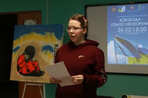 26 лютого у Просторі міжкультурного діалогу Житомирської обласної універсальної наукової бібліотеки ім. О. Ольжича відбувся тематичний захід «Свобода — голос нескорених», присвячений Дню спротиву окупації Криму.