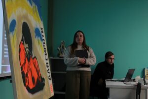 Зі змістовною розповіддю виступила представниця ГО «Крим – SOS» Світлана Корсік, яка презентувала історію кримськотатарського художника Богдана Зізи («Сирота») — приклад того, як мистецтво стає формою спротиву й голосом свободи.